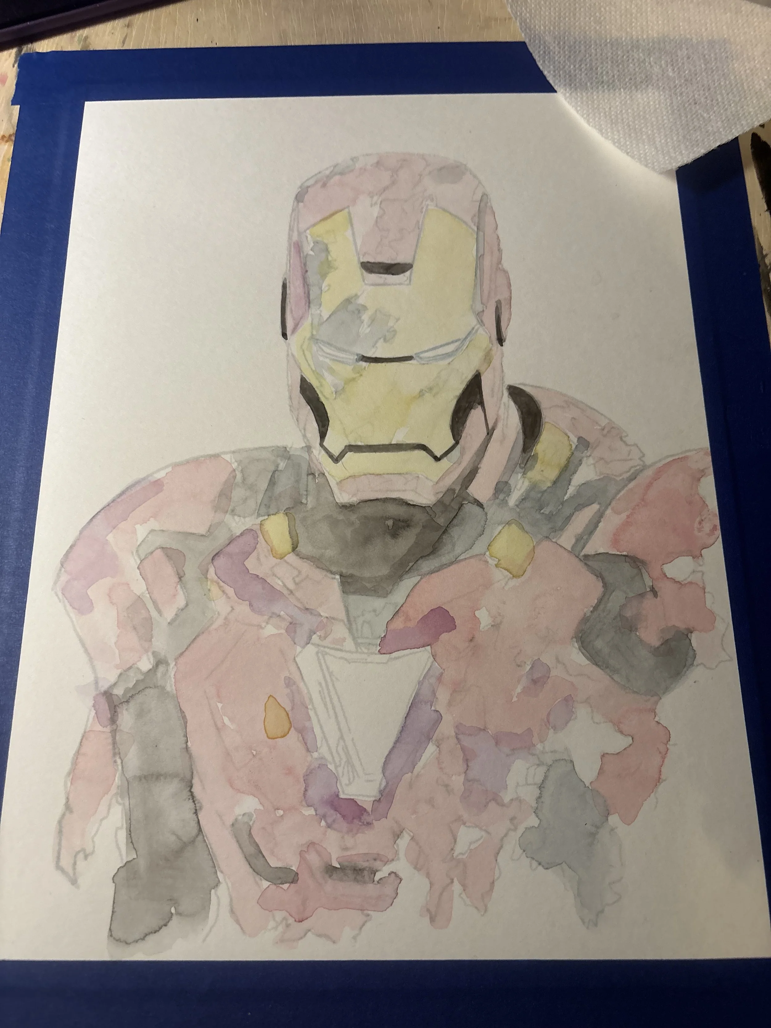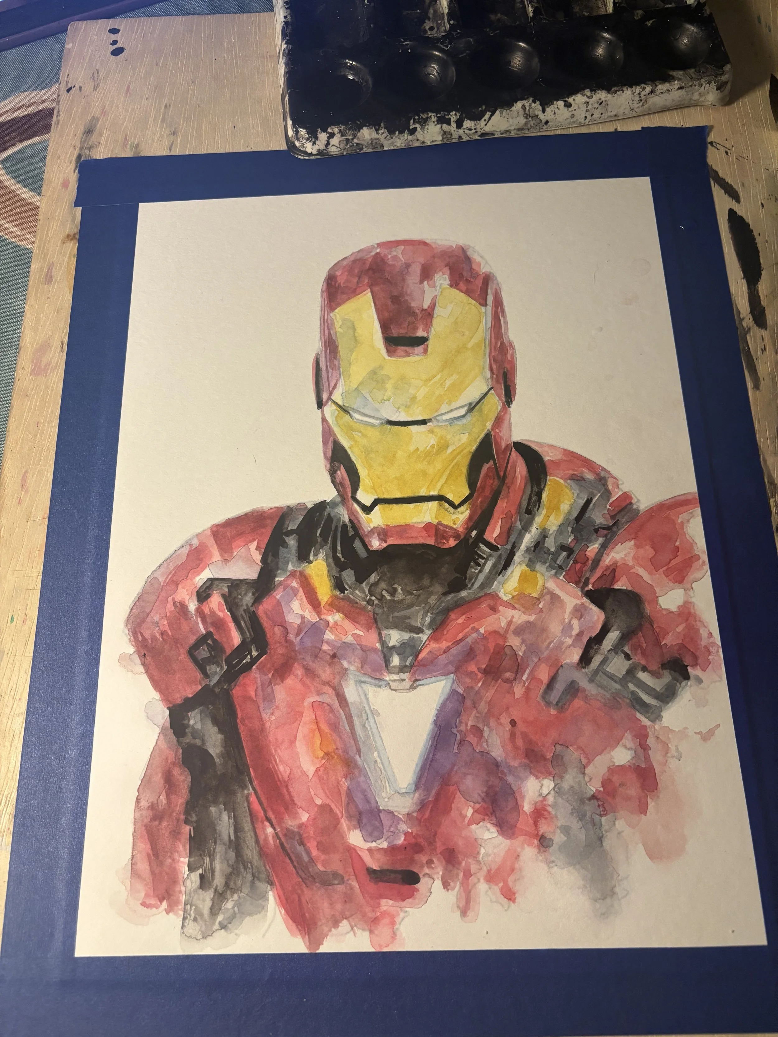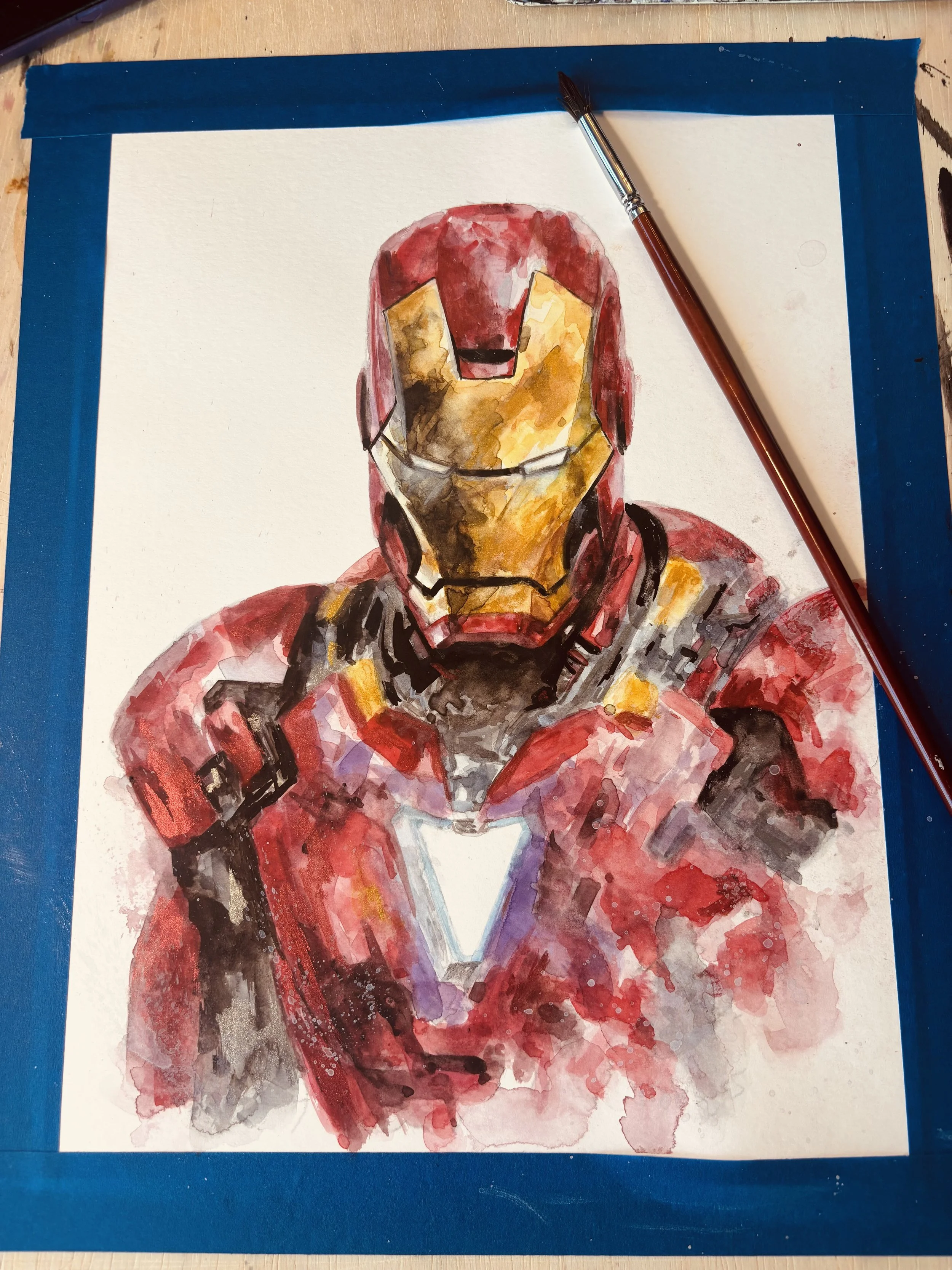 Iron Man9”x12” Hot Press 140 lbs Fabriano Studio Watercolor paper. Winsor & Newton Watercolor Paint. 4/2025